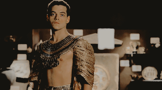 AKHMA'AT THE THIRD. rami malek. pharaoh. open.